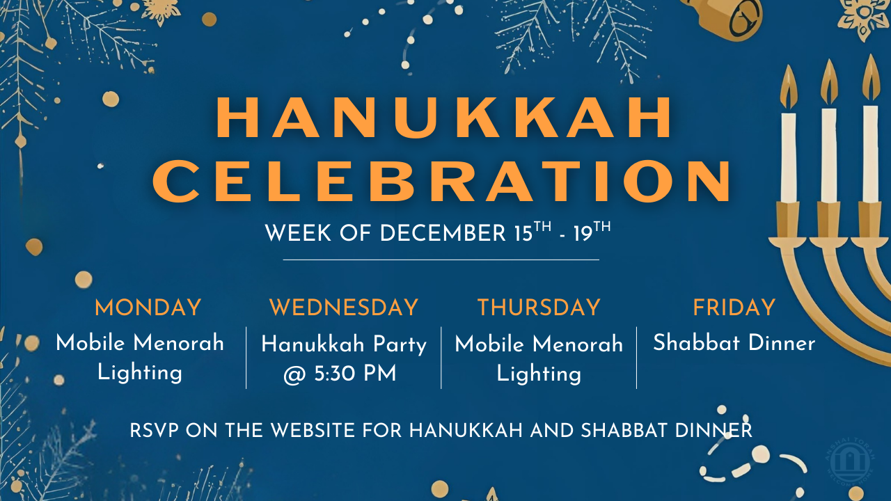 Thursday keeps the momentum going with another Mobile Menorah Lighting, and we’ll wrap it all up on Friday with a warm, welcoming Shabbat Dinner to celebrate the season together. Don’t miss out