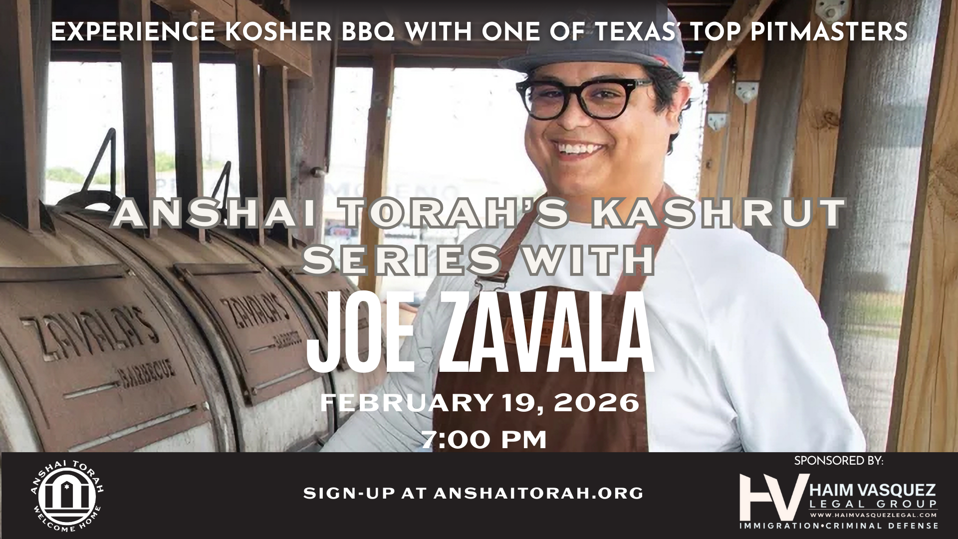 Get ready for an unforgettable evening of flavor and learning at Anshai Torah’s Kashrut Series with Joe Zavala!
