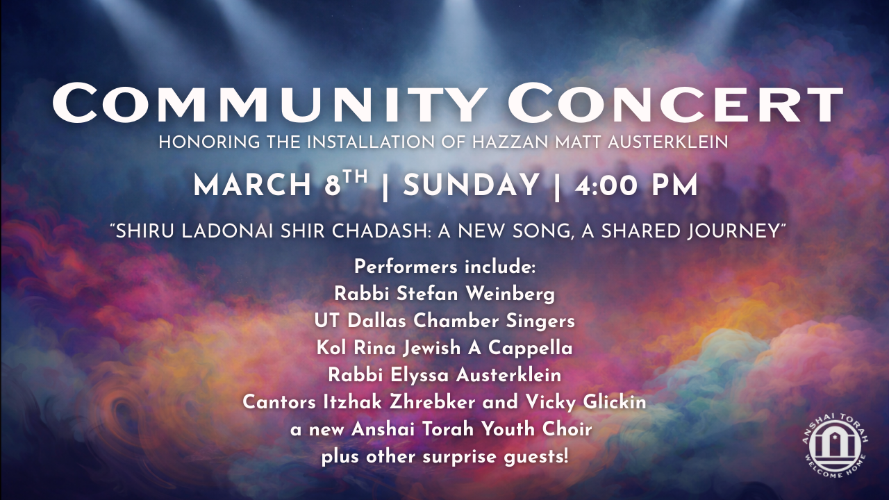 Purchase Tickets for Sunday Afternoon's "Shiru L'Adonai Shir Chadash" Concert March 8, 2026, 4:00pm
